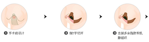根据胸部下垂的组织量不同,手术方法不同,根据伤疤形状不同;可以划分为三种手术方法。