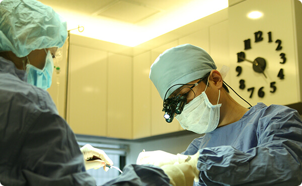 使用显微外科设备进行手术操作,