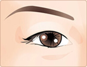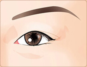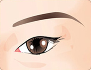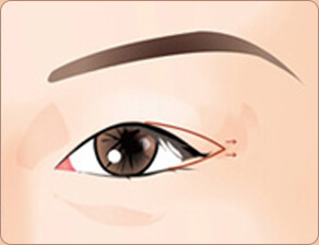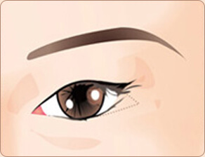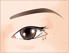 通过把下眼皮边缘的3分之1即黑眼球外侧的下眼皮部位 向下侧移动的手术方法。此手术在结膜内侧进行,因此 在看不出疤痕的同时将眼尾放低。