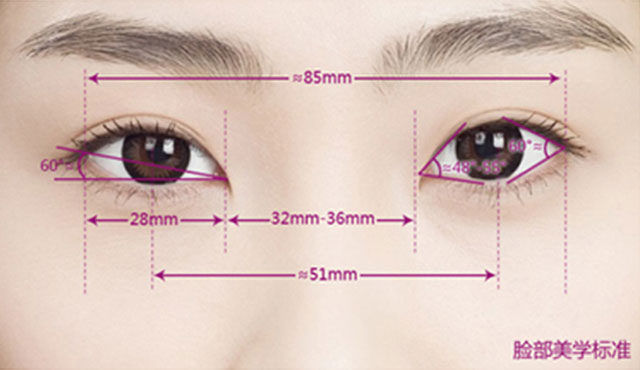 内眼角约48°,外眼角约60°,黑瞳比例提升的更自然,数据化的脸部美学才有精致的精细眼部整形技术。