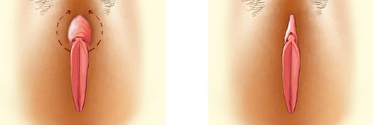 去除多余的阴蒂,再经美容缝合,局部不留痕迹,